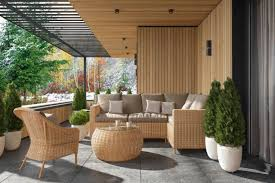 The exterior is designed in a maritime style with soft sand tones, creating a serene coastal atmosphere. The architecture harmoniously blends with the surrounding landscape, emphasizing modern luxury.